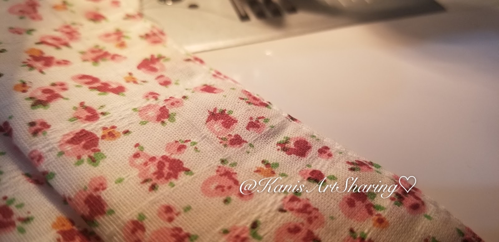 將底面兩塊布料的(略長身一邊)脚部份用衣車向内卷封口...
